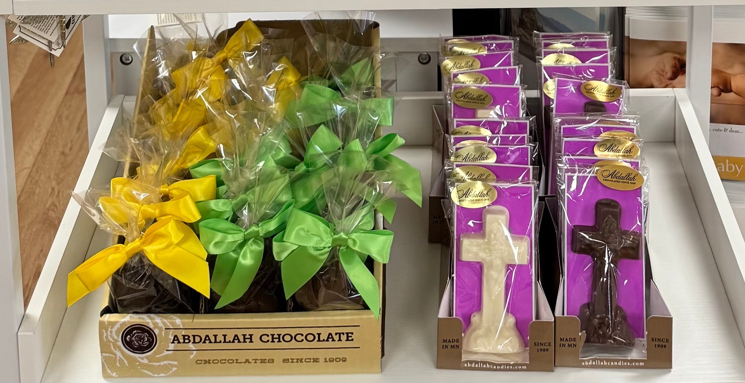Easter is early this year, April 5, 2026 and we are ready. Beautiful decor, delicious Abdallah Candy and soft plush bunnies are waiting for you. Hop on in for the best selection.